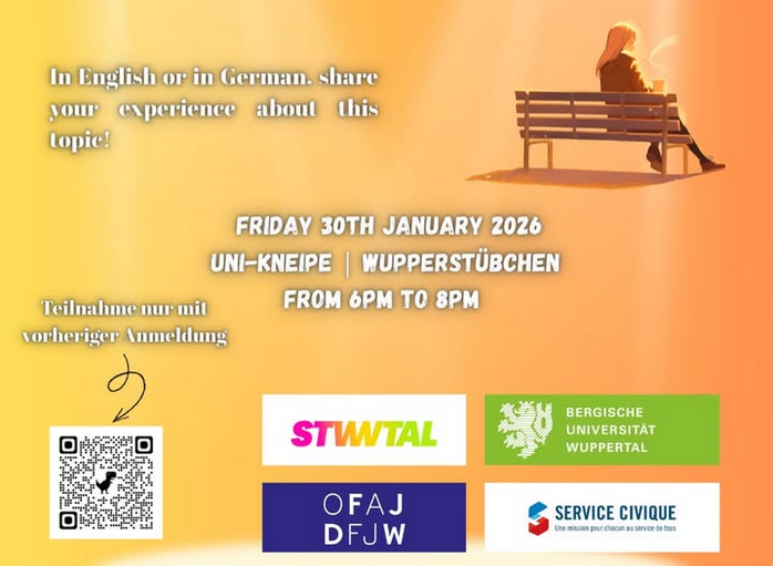 Am Freitag, den 30. Januar, laden wir euch von 18:00 bis 20:00 Uhr zu einem besonderen Open Mic Abend zum Thema Mental Health ein. In der Uni-Kneipe / Wupperstübchen öffnen wir einen geschützten Raum für Austausch, Zuhören und gemeinsames Innehalten.